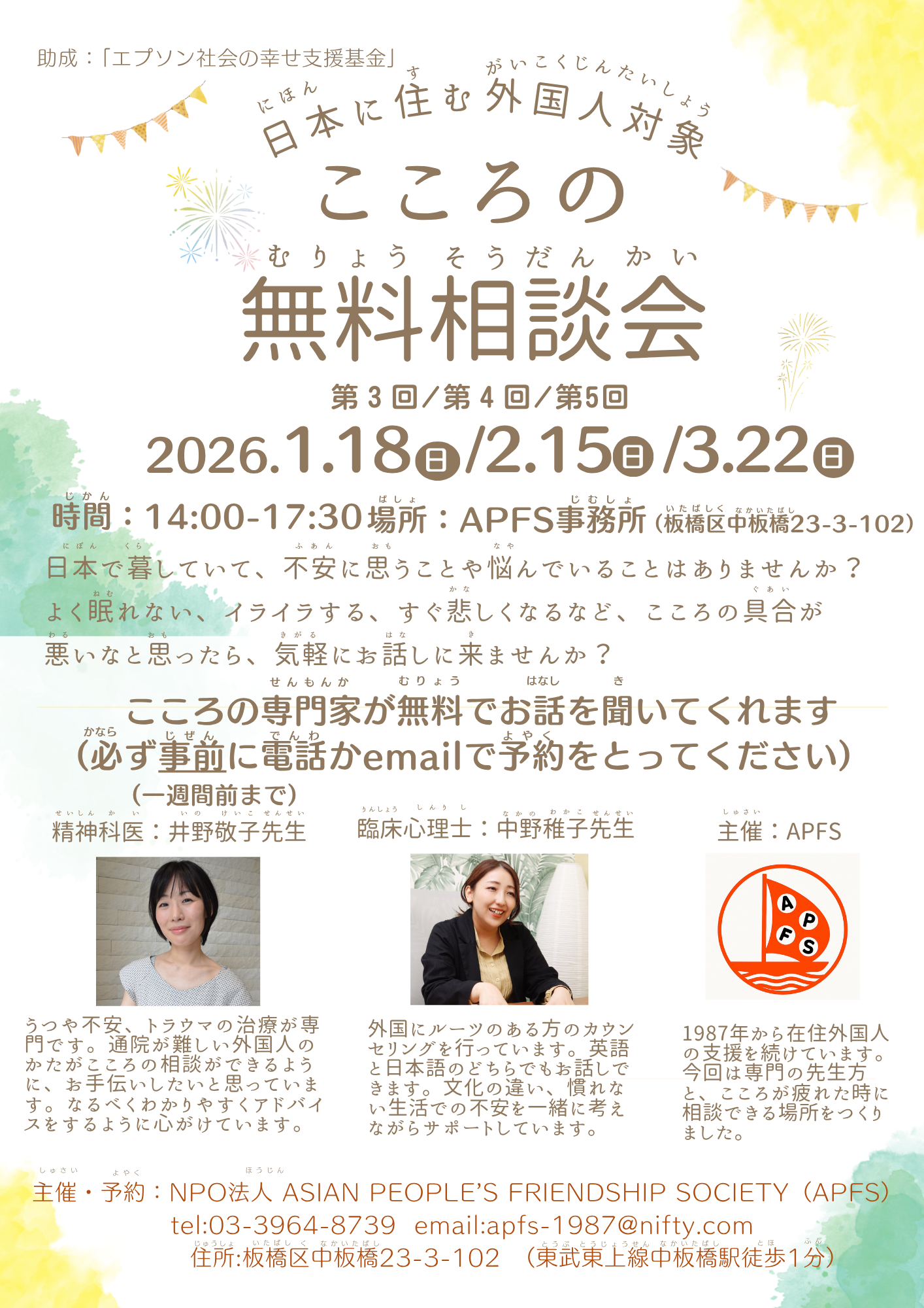 1980年代半ば以降、東アジア、東南アジア、南アジアの国々から勉学や就労を目的として、たくさんの人たちが日本を訪れるようになりました。ある日本人が銭湯で数名のバングラデシュ人と出会い、親交を深める中で、彼・彼女らが生活や差別の問題に苦しんでいること知ります。このことをきっかけに、「共に助け合いながら生きる」ことを目的とした、相互扶助組織としてASIAN PEOPLE’S FRIENDSHIP SOCIETY(略称:APFS)が1987年に設立されました。