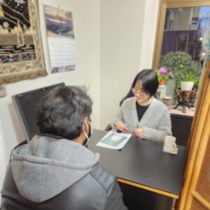 来年1,2,3月は毎月一度、同じく精神科の専門医と臨床心理士が来て皆さんのお話を無料で聞きます。不安感で眠れない、食欲がない、心が安定しないなど、こころの不調を感じている方はぜひお越しください。気兼ねなくゆっくり話していただくためにお一人1時間の時間を取って、予約制で行っています。話すことですっきりすることもありますし、通院すべきか迷っている方もその旨先生方にお話しいただければ、通院すべきかの判断もしてくれます。どのような気持ちで過ごすと不安感を解消できるかなどのアドバイスもしてくれます。お薬を出すことはできませんが、つらい気持ちに一筋でも光を見つけられればと思います。先生方は外国人のご相談の経験がある方です。英語での対応は可能ですが、他の言語で通訳が必要な場合はおっしゃってください。